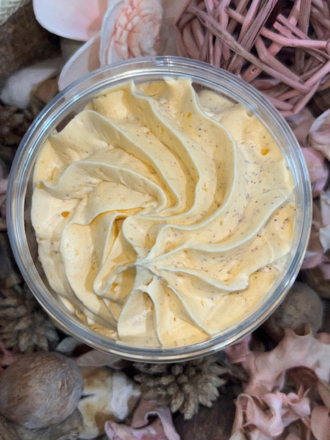 Chantilly de douche exfoliante MANGUE à la poudre de noyau d'abricot